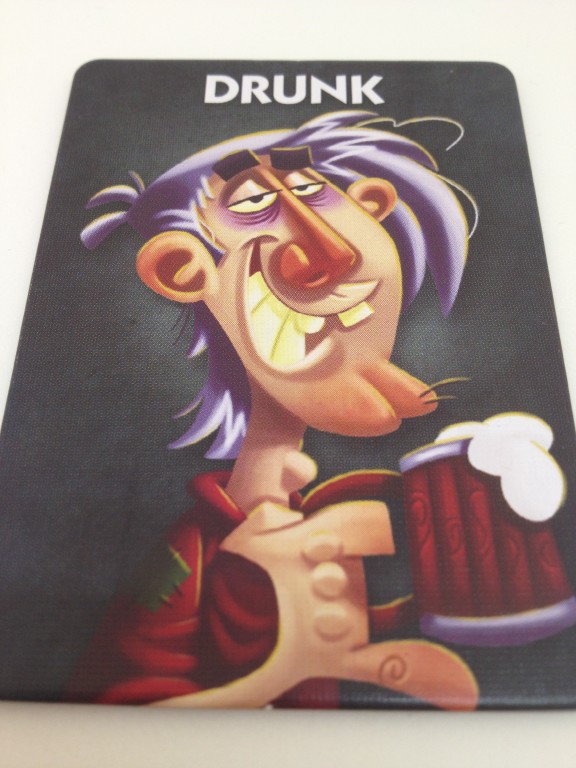 The Drunk swaps their role with any of the 3 cards in the middle of the table, without looking at it!